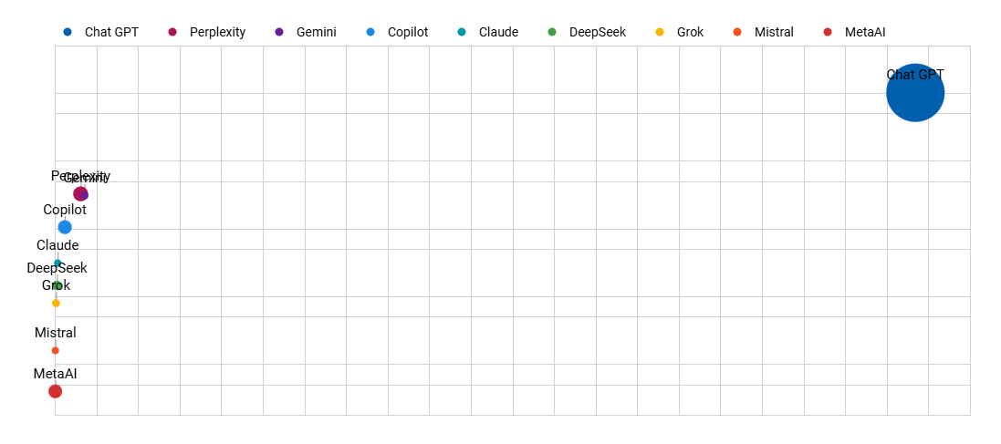 Und hier gilt: Je sichtbarer eine Domain in den Google-Suchergebnissen ist, desto mehr Generative-AI-Traffic generiert sie.