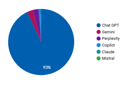 Im Gesamtkanalmix machen LLMs (nach unseren Beobachtungen – je nach Größe und Reputation der Brand/Website – zwischen 1 % und 5 % aus.